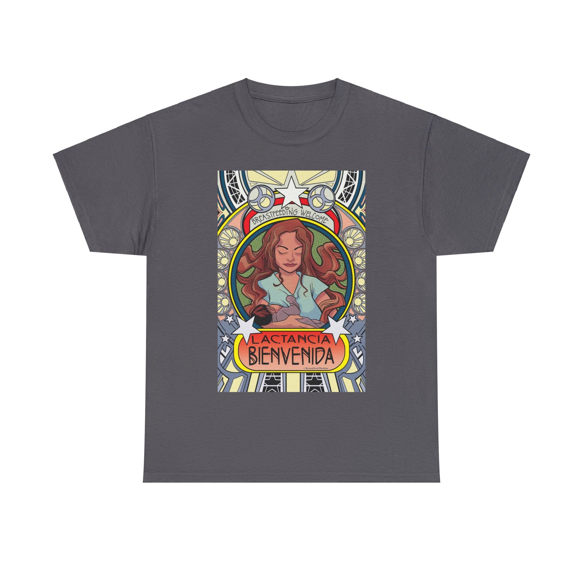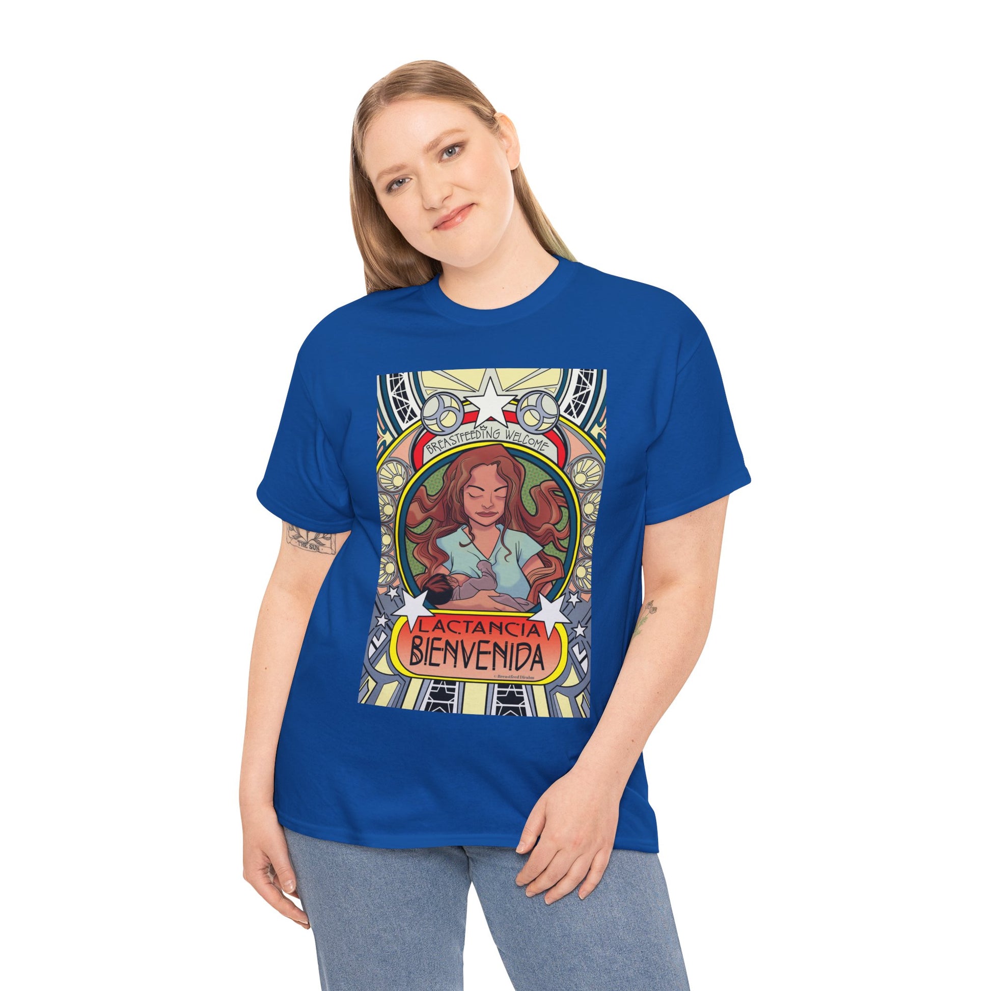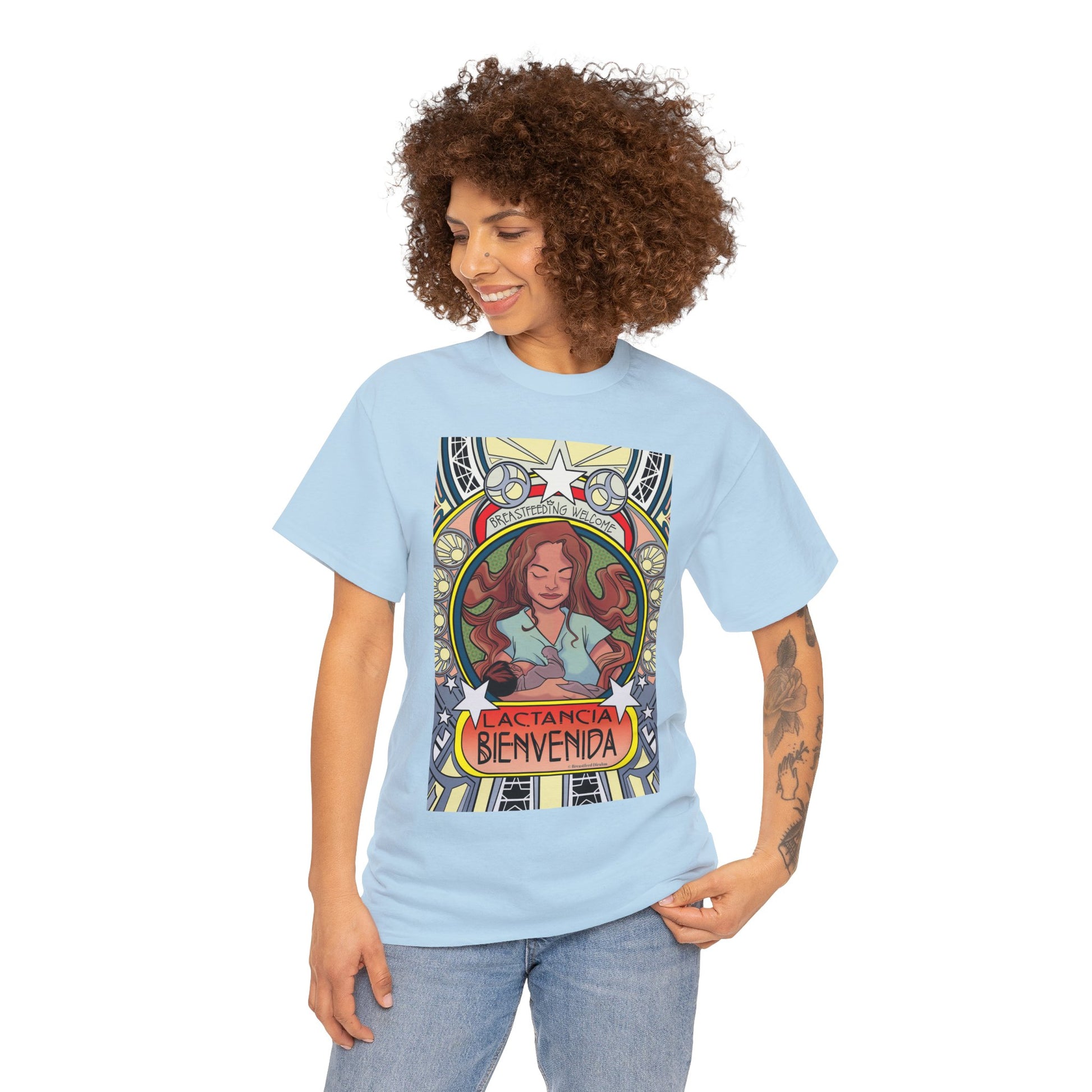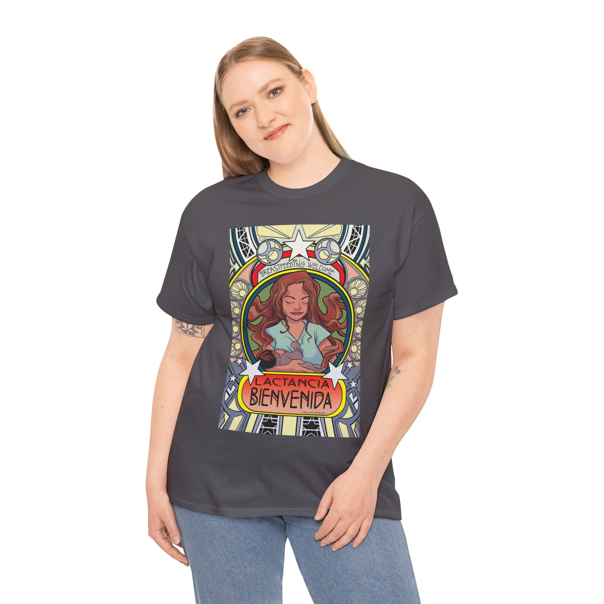 Show your style with out Breastfeeding Welcome t-shirt! This 100% cotton shirt has a large graphic print on the front, and features a gallery of all of our artwork on the back.