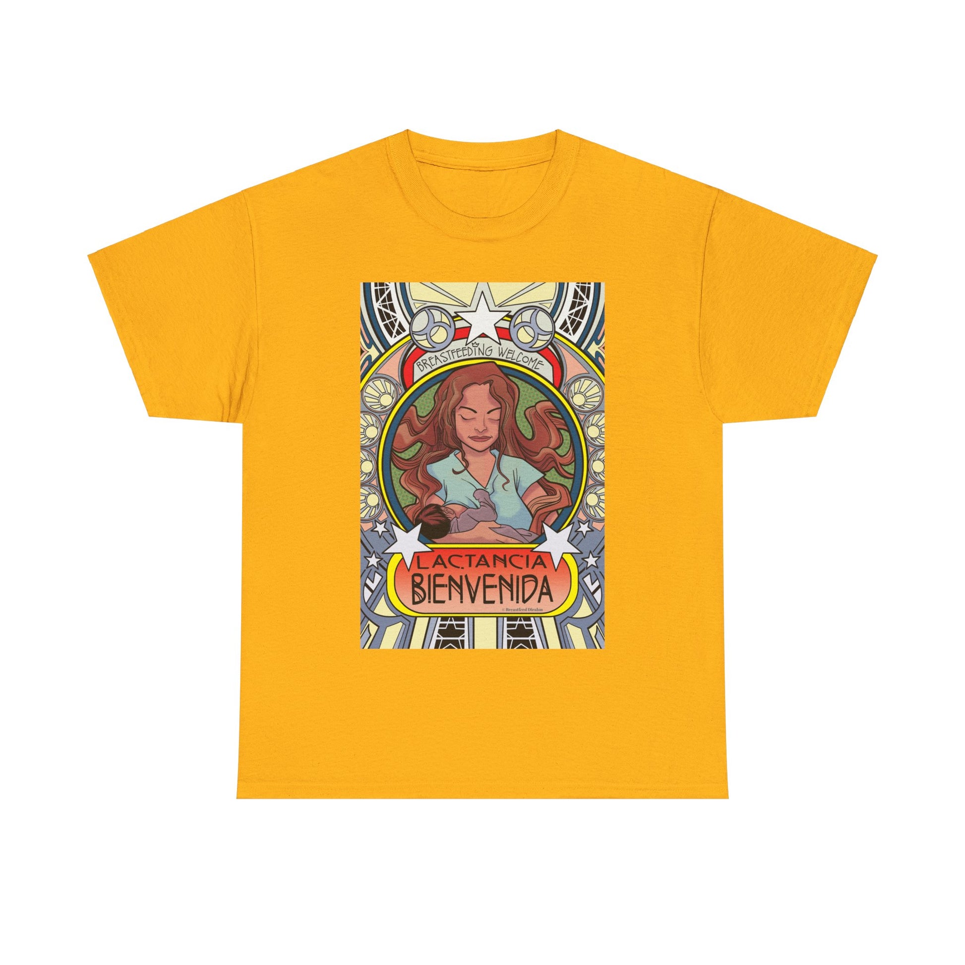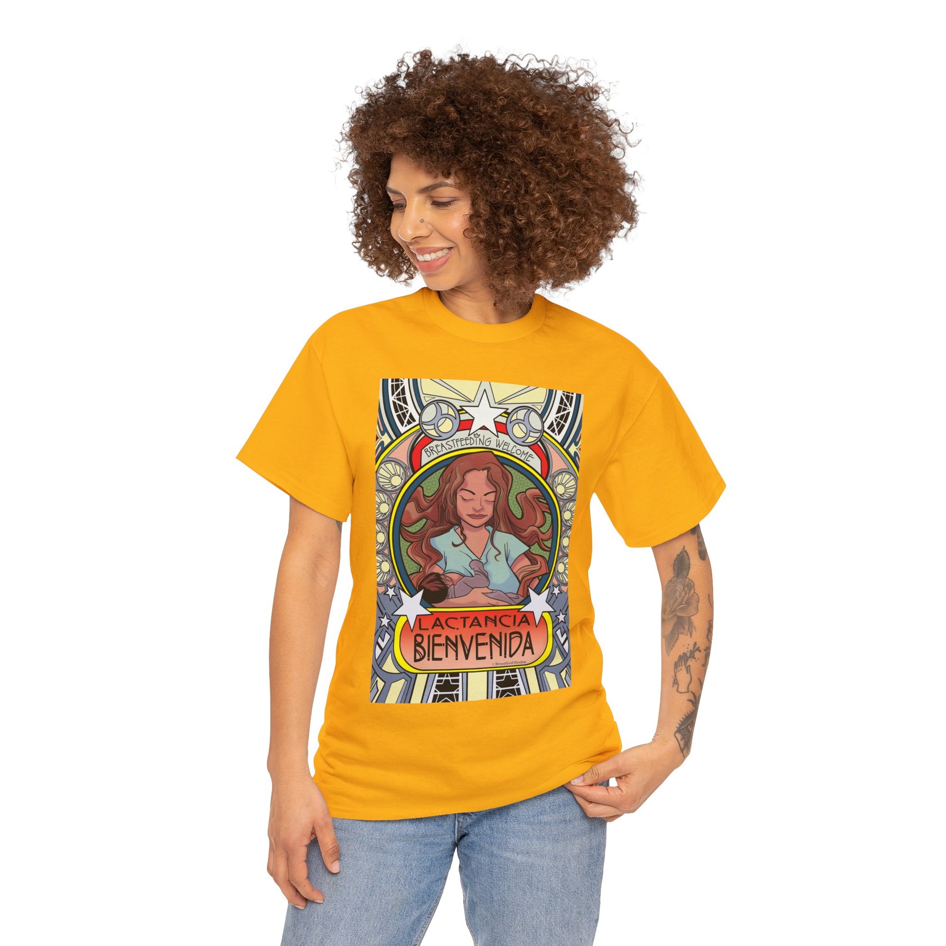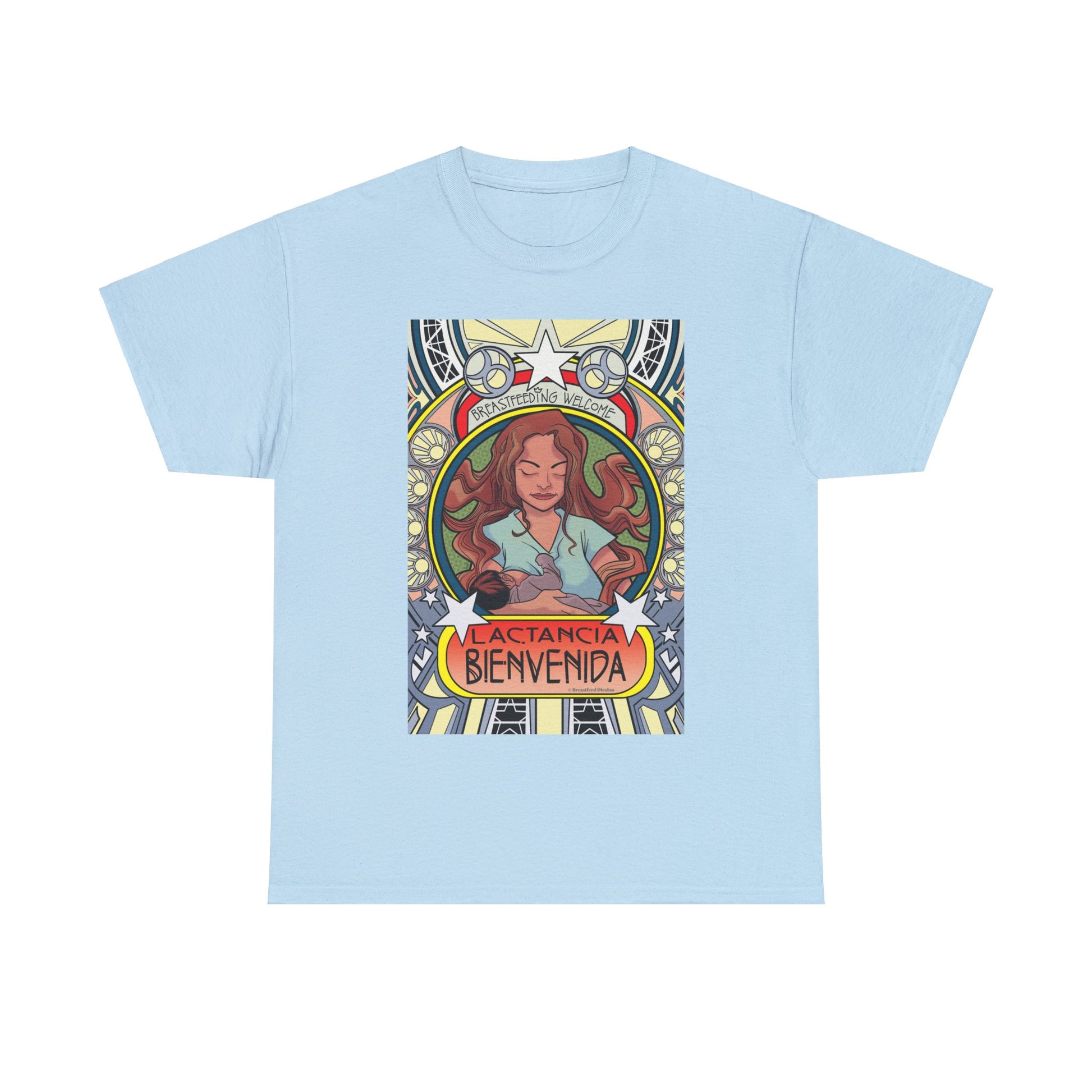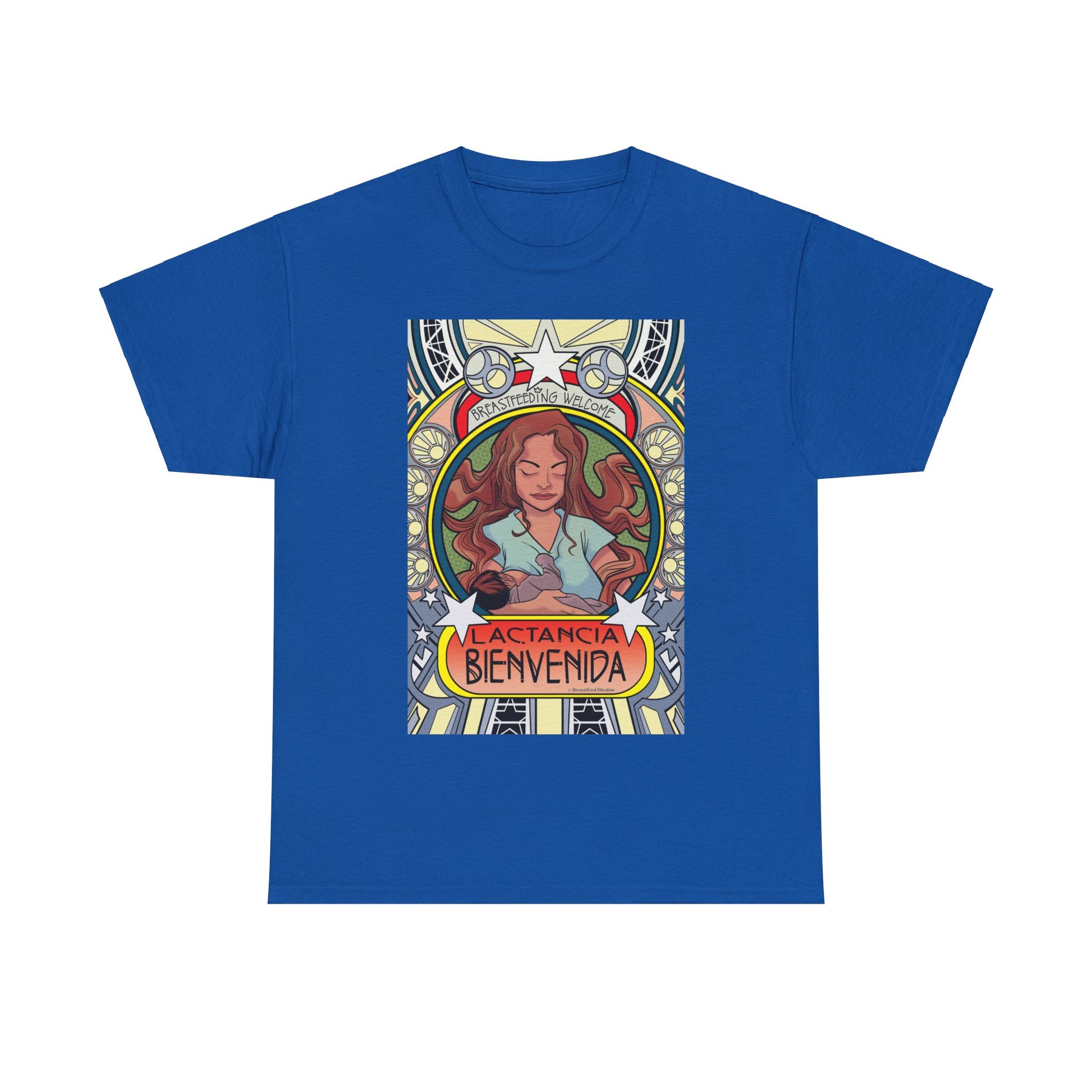 Show your style with out Breastfeeding Welcome t-shirt! This 100% cotton shirt has a large graphic print on the front, and features a gallery of all of our artwork on the back.