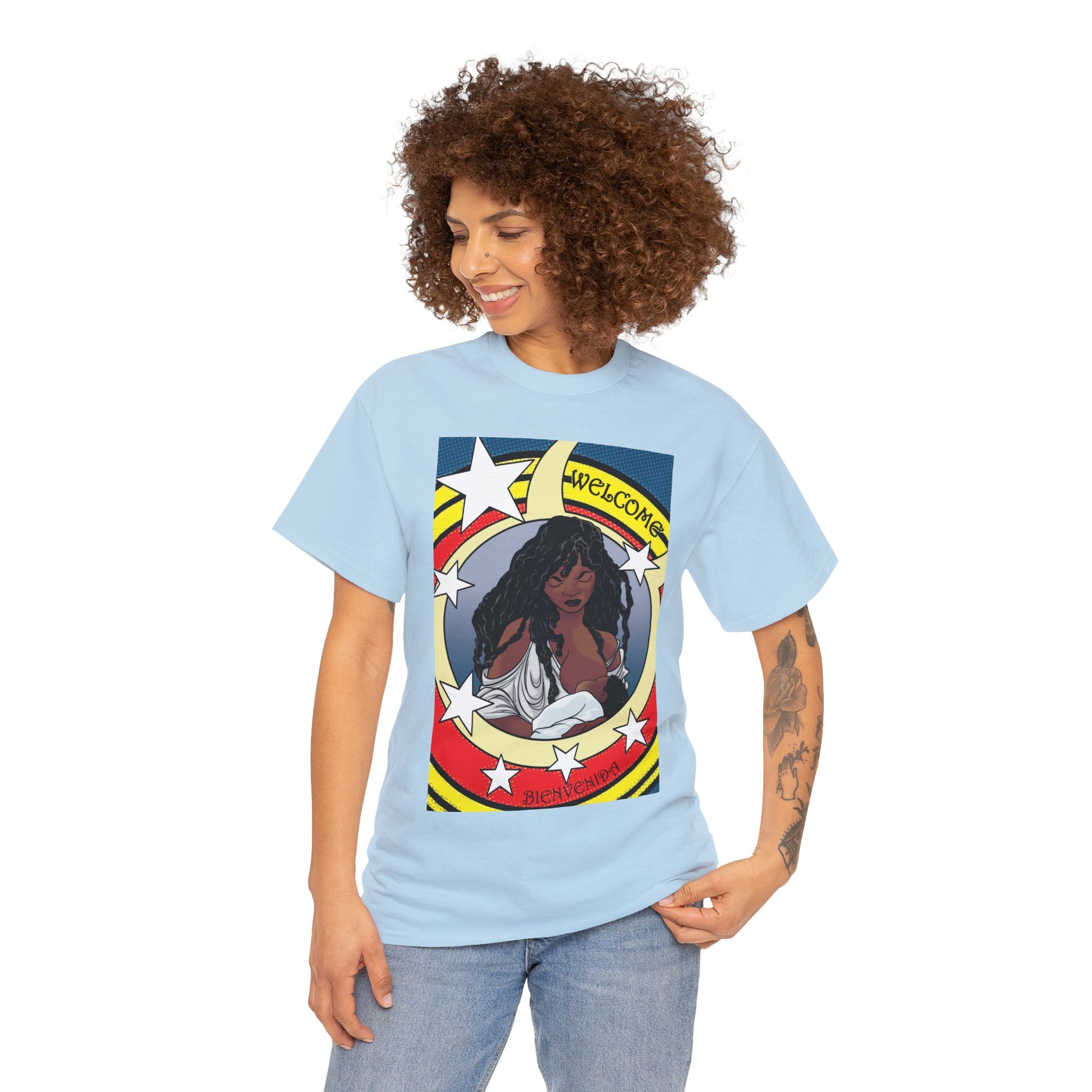 Join us in making the world a more breastfeeding-friendly place, one T-shirt at a time. Order yours today and be a part of a movement that welcomes, supports, and celebrates breastfeeding families with open arms and open hearts."
