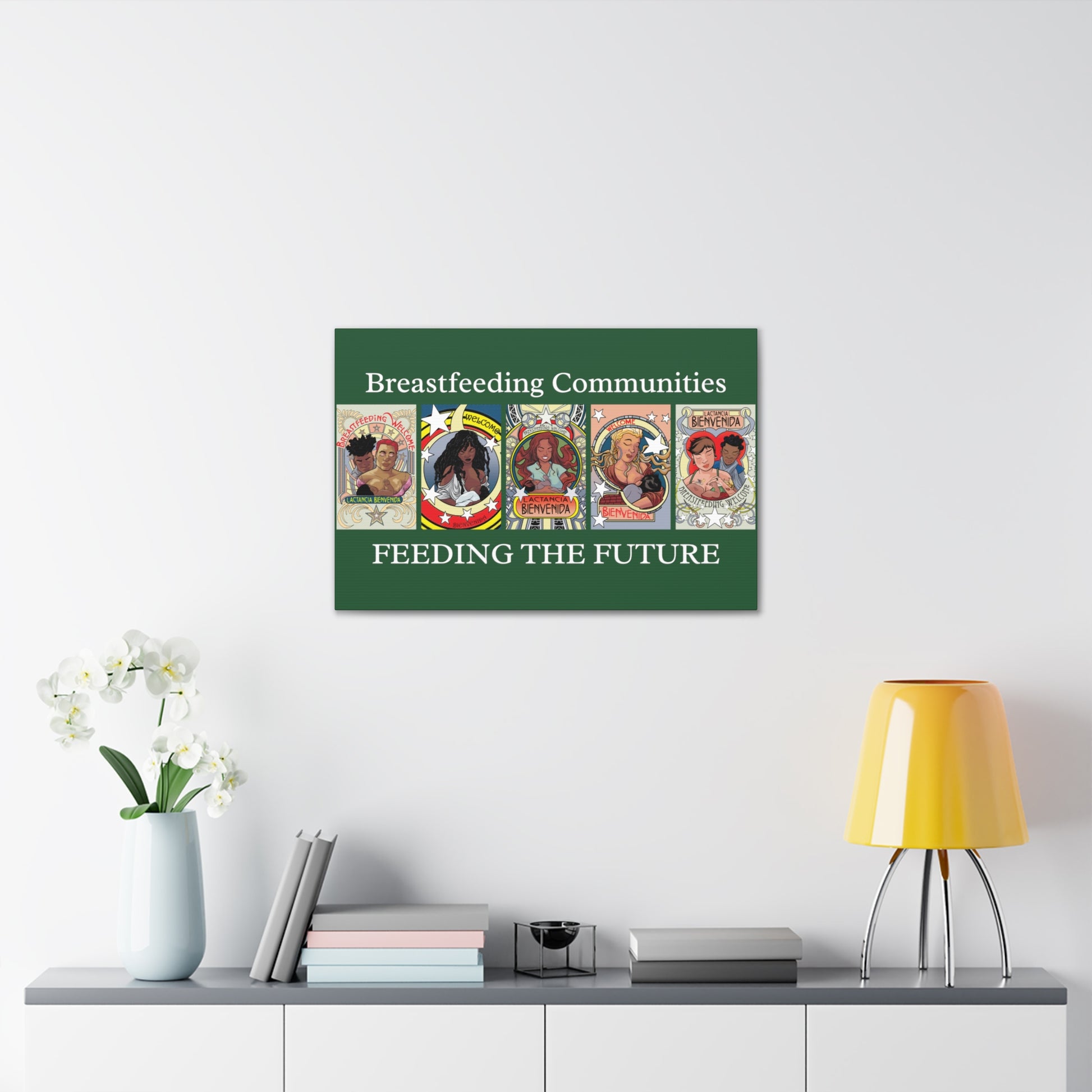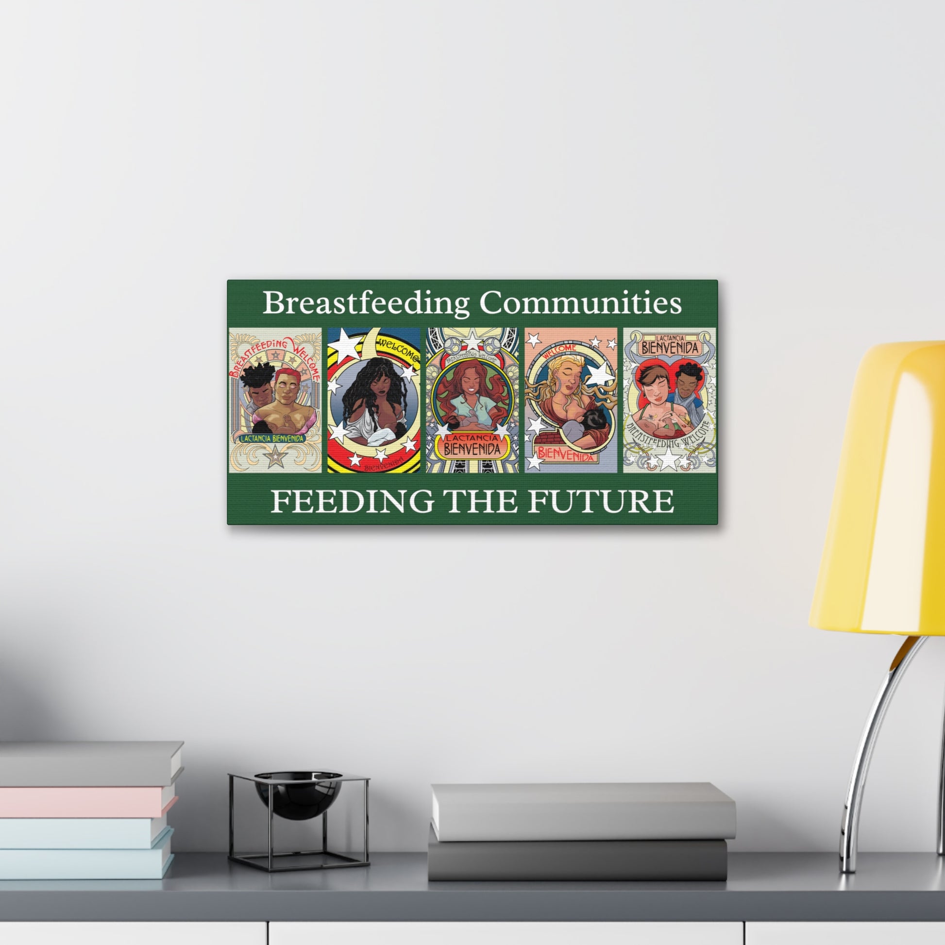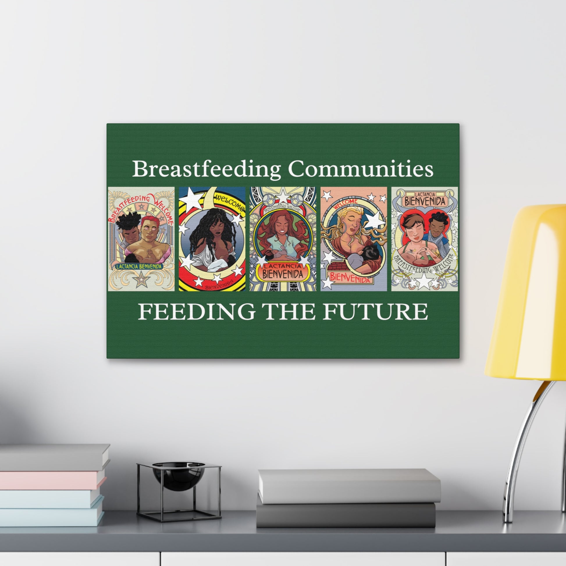 Transform your space into a beacon of support and inspiration with our exclusive collection of canvas gallery wraps, featuring the celebrated artwork of L Jámal Walton. Set against the vibrant green of the Breastfeeding Communities background, and emboldened with the message 'Feeding the Future,' each canvas is a masterpiece of advocacy, art, and the shared journey of breastfeeding families.