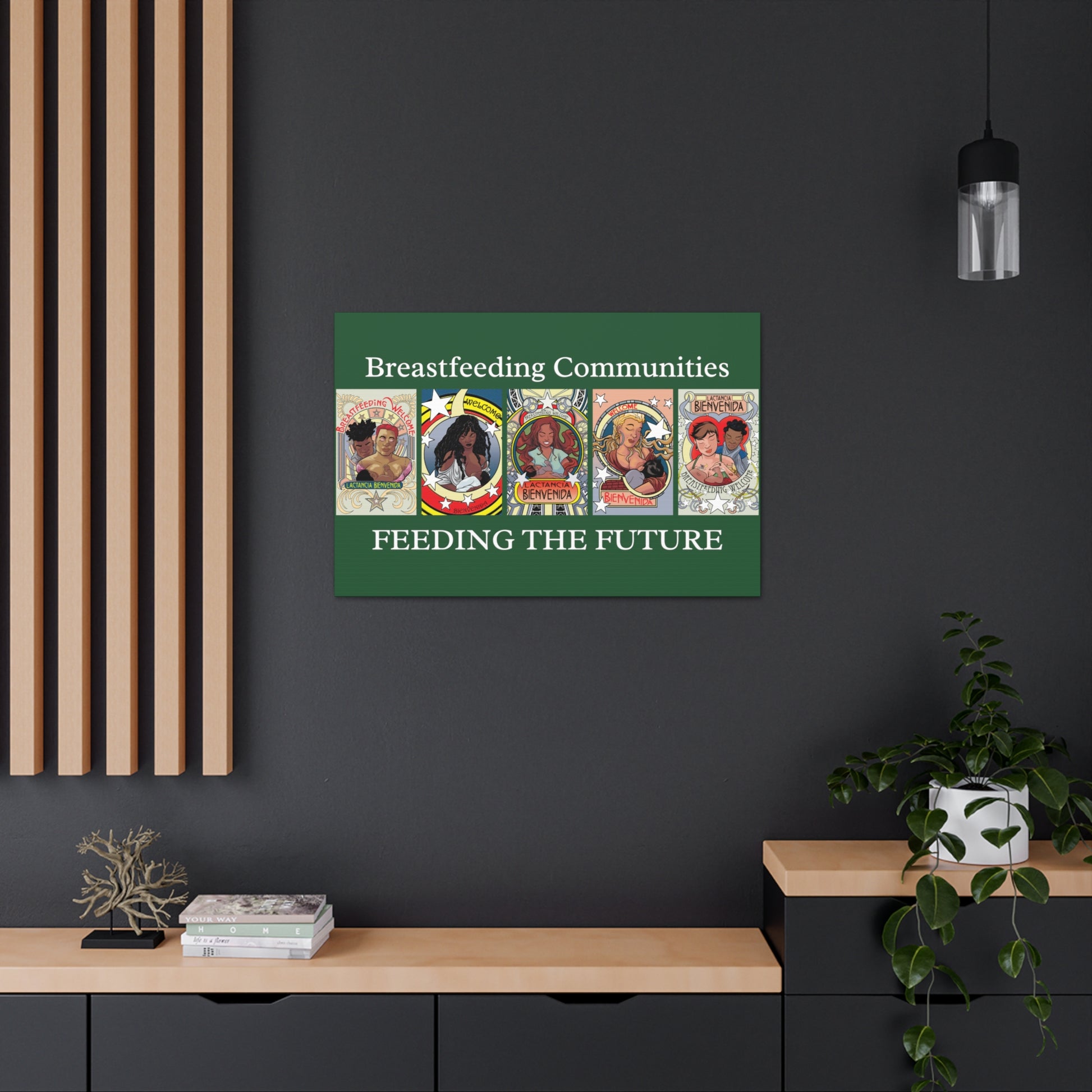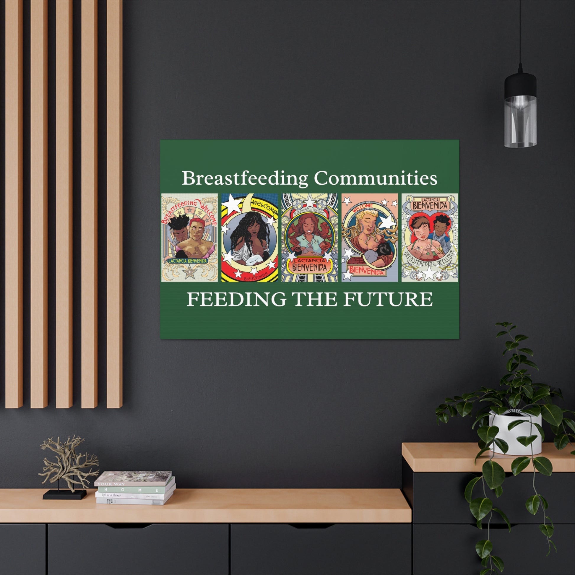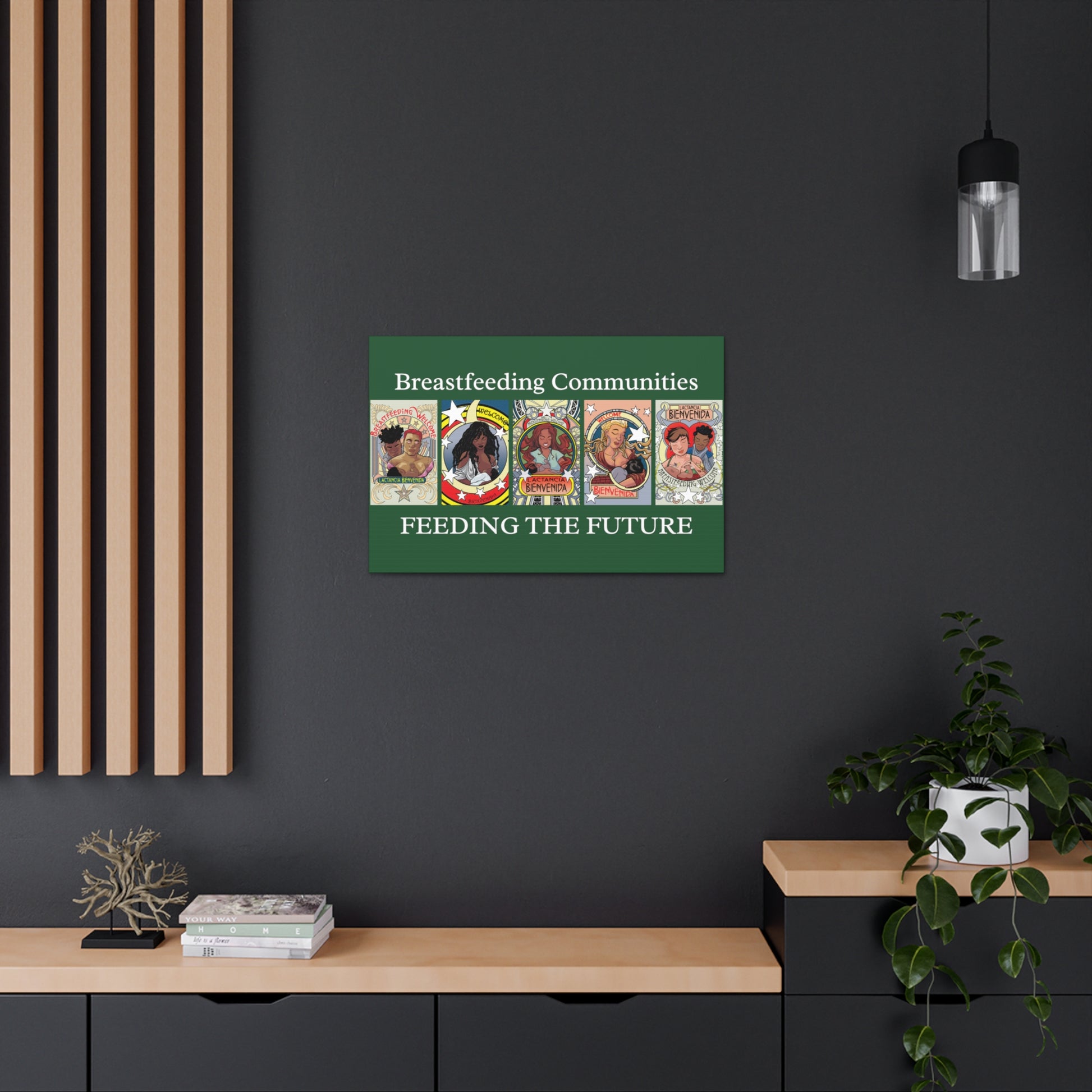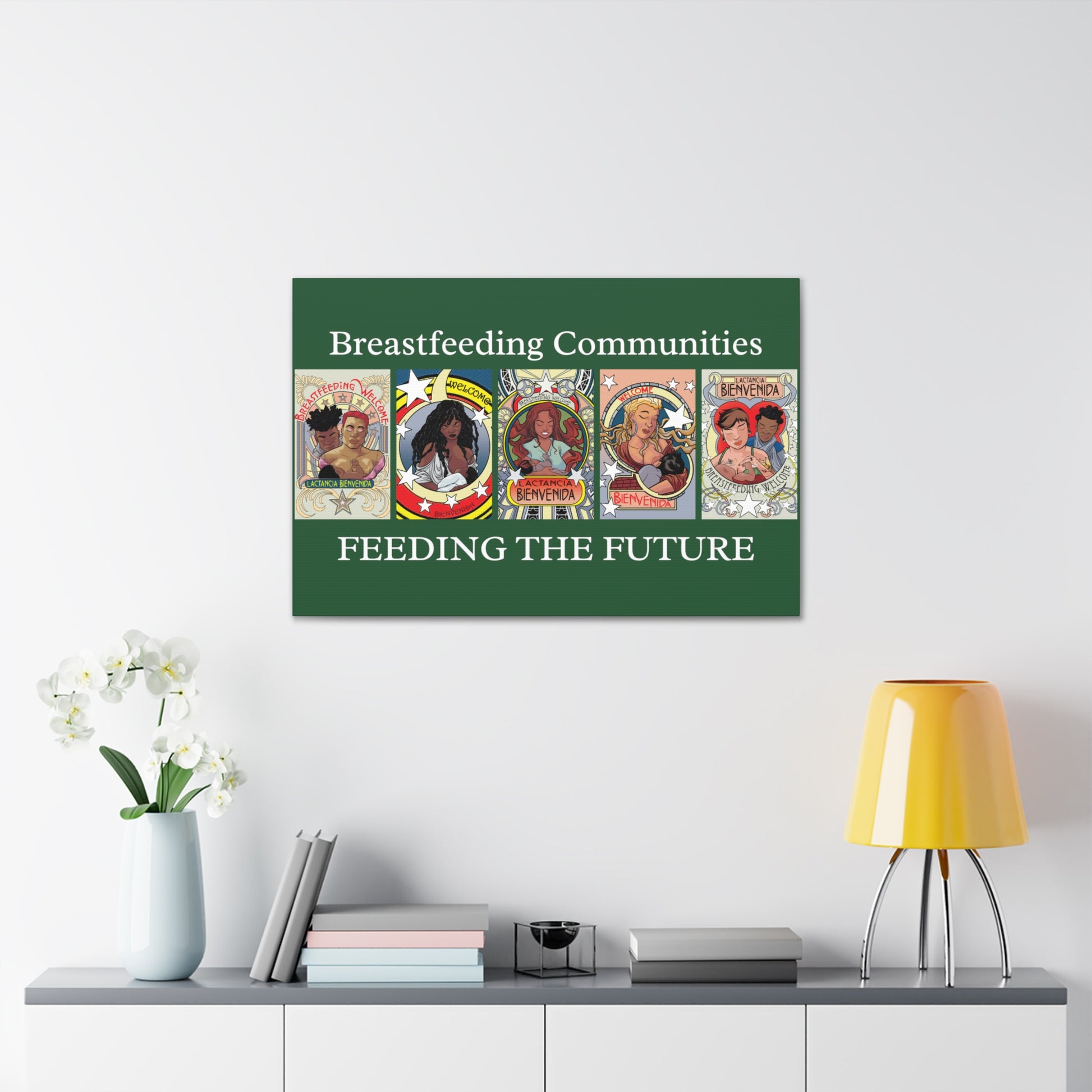 Transform your space into a beacon of support and inspiration with our exclusive collection of canvas gallery wraps, featuring the celebrated artwork of L Jámal Walton. Set against the vibrant green of the Breastfeeding Communities background, and emboldened with the message 'Feeding the Future,' each canvas is a masterpiece of advocacy, art, and the shared journey of breastfeeding families.